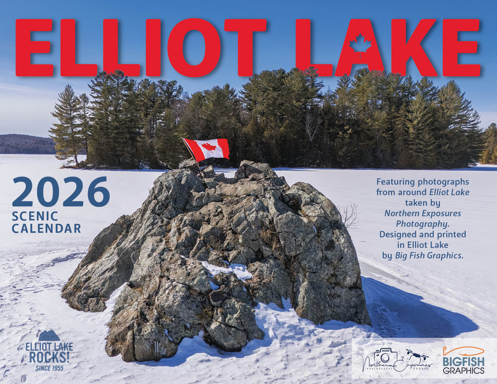 Calendar features over 55 pictures of Elliot Lake by Northern Exposures photography.